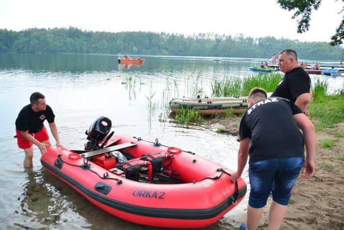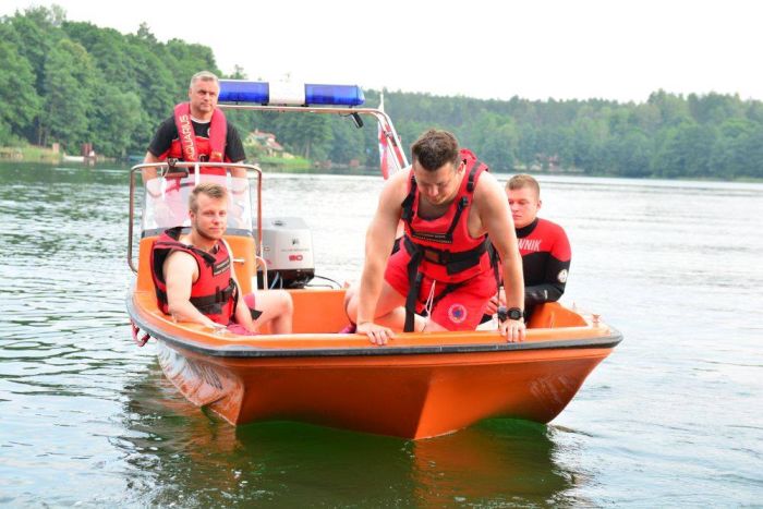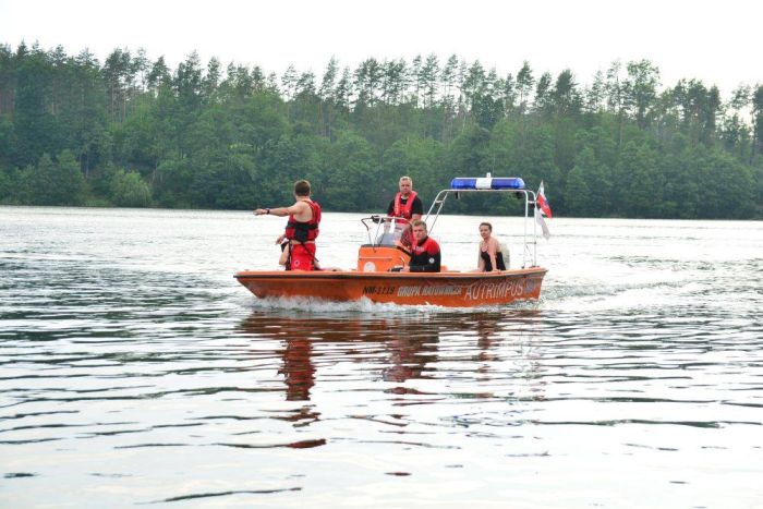 W sobotni wieczór (25 czerwca) uczestniczyliśmy w obchodach „Nocy świętojańskiej, które zorganizowano nad jeziorem Dłużek (gmina Jedwabno). Organizatorem wydarzenia był Gminny Ośrodek Sportu w Jedwabnie. Jednym z elementów obchodów nocy sobótkowej był pokaz ratownictwa wodnego w naszym wykonaniu. Dodatkowo zabezpieczaliśmy zawody kajakowe.